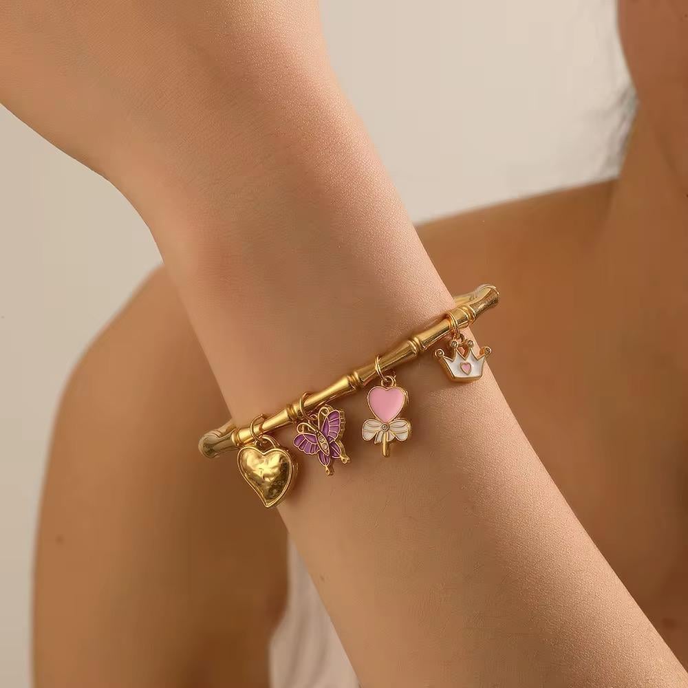 مزود بتشارمز ناعمة مستوحاة من الرموز الحلوة مثل الفراشة، القلب، التاج، والفيونكة، ليحكي كل شكل قصة أنوثة ودلع بأسلوبك.